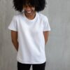 Ce T-shirt blanc à manches courtes est un choix de mode versatile, qui vous permet de faire un choix éthique tout en ayant un look élégant et à la mode.